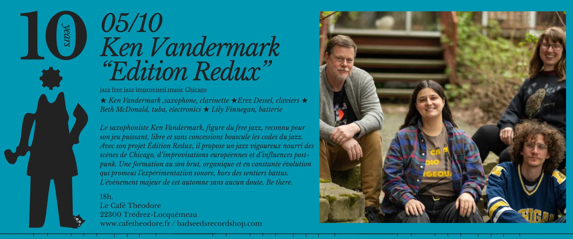Le saxophoniste Ken Vandermark, figure du free jazz, reconnu pour son jeu puissant, libre et sans concessions bouscule les codes du jazz. Avec son projet Édition Redux, il propose un jazz vigoureux nourri des scènes de Chicago, d’improvisations européennes et d’influences post-punk. Une formation au son brut, organique et en constante évolution qui promeut l’expérimentation sonore, hors des sentiers battus. L’évènement majeur de cet automne sans aucun doute. Be there.