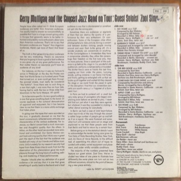 Gerry Mulligan And The Concert Jazz Band On Tour